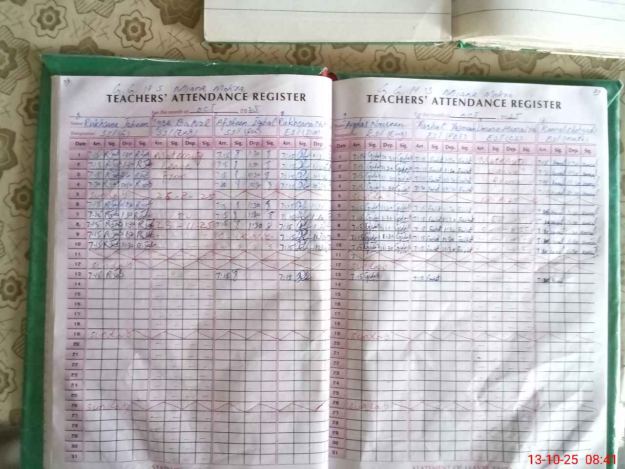 | 37**** | Um**** Hu**** | EST | Regular | 0 | 0 | 0 | 0 | 0 | 0 | 0 | 0 | 0 | Maternity |