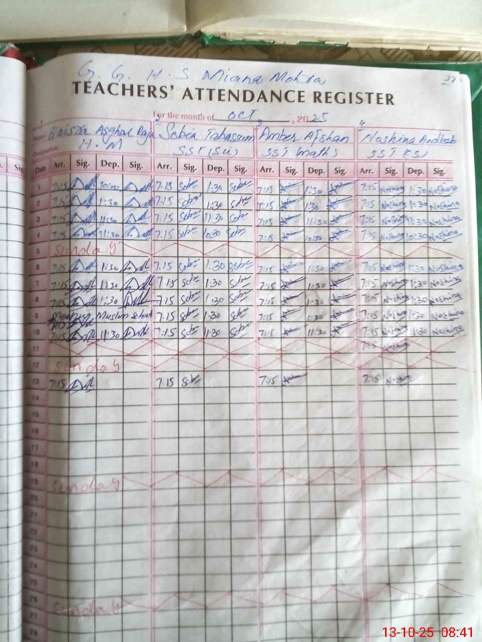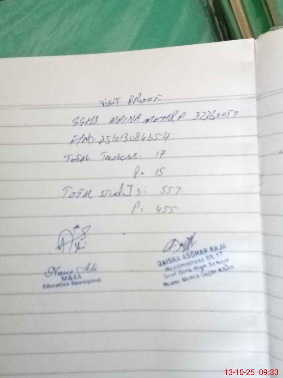 | Attendance Register | Head Teacher | MEA with School | Visit Proof |