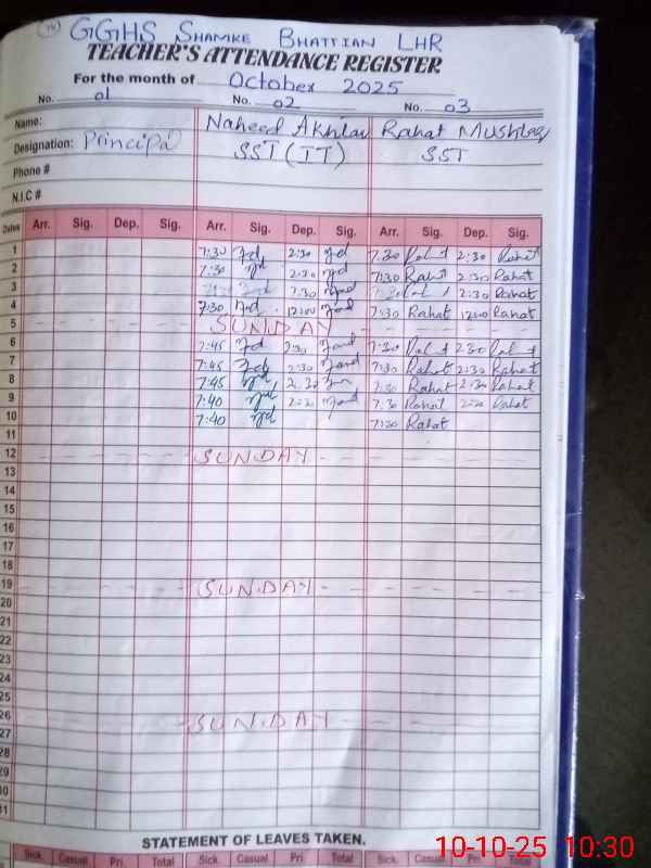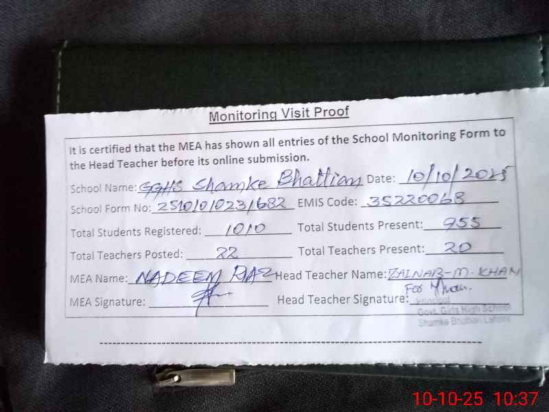 | EMIS Code: 35220068 | Name of School: GGHS SHAMKE BHATTIAN | |||
