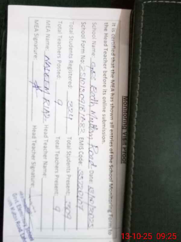 | EMIS Code: 35220107 | Name of School: GES BATH MULTAN ROAD | |||