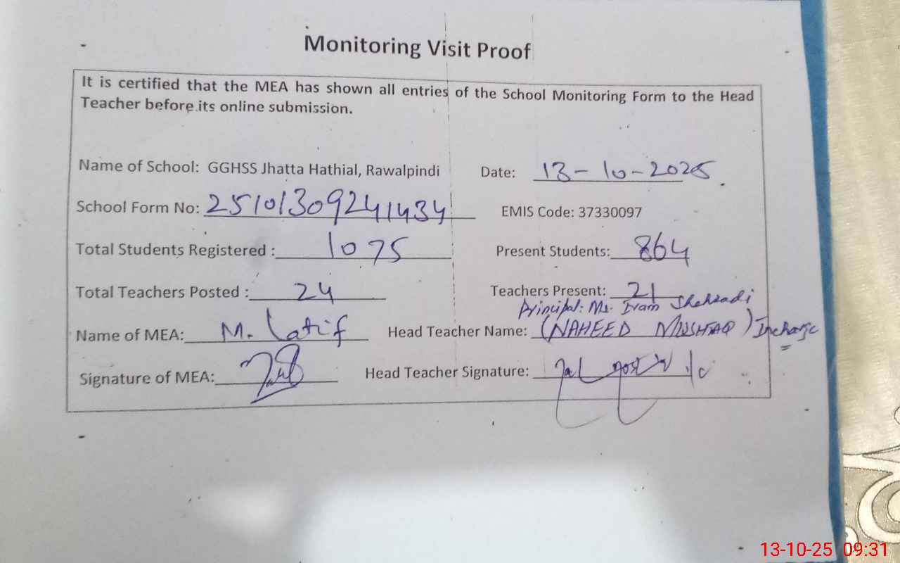 | EMIS Code: 37330097 | Name of School: GGHSS JHATTA HATHIAL | |||