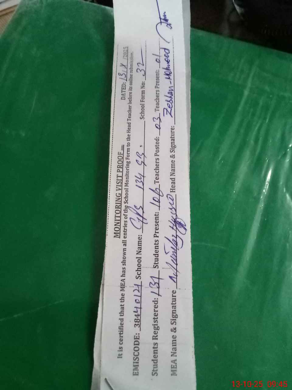 | Certified that this School was Inspected by the Undersigned MEA/DMO Today and the Information Stated Above is as Per Record. | |||||