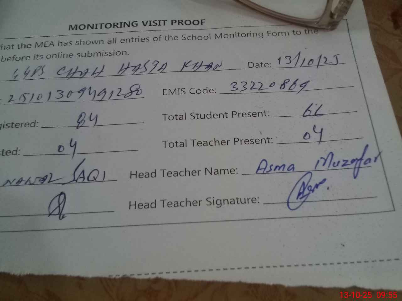 | Name: AS**** MU**** Designation: (School Headmaster's/Headmistress's) PST Phone/Cell Number: 03**** |