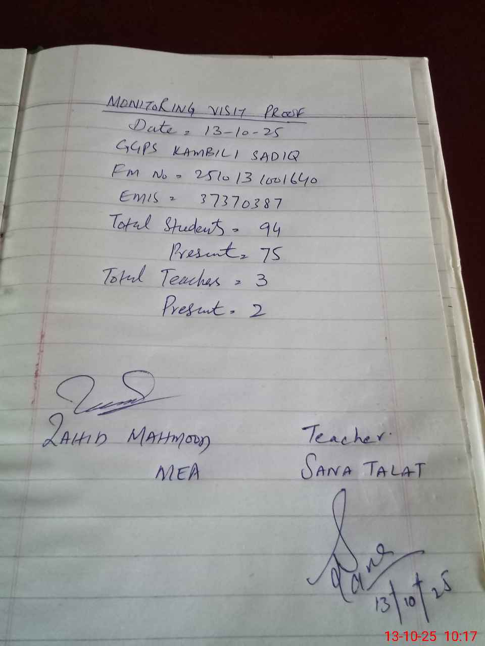 | EMIS Code: 37370387 | Name of School: GGPS KAMBILI SADIQ | |||