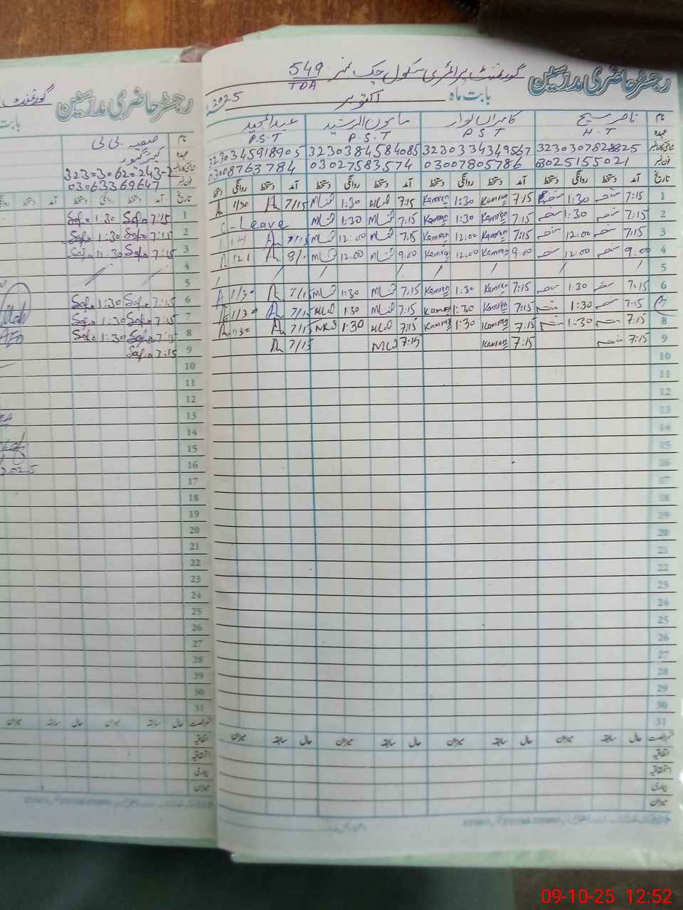 | CNIC | Full Name | Designation | R/C | Absence during last cal. month |