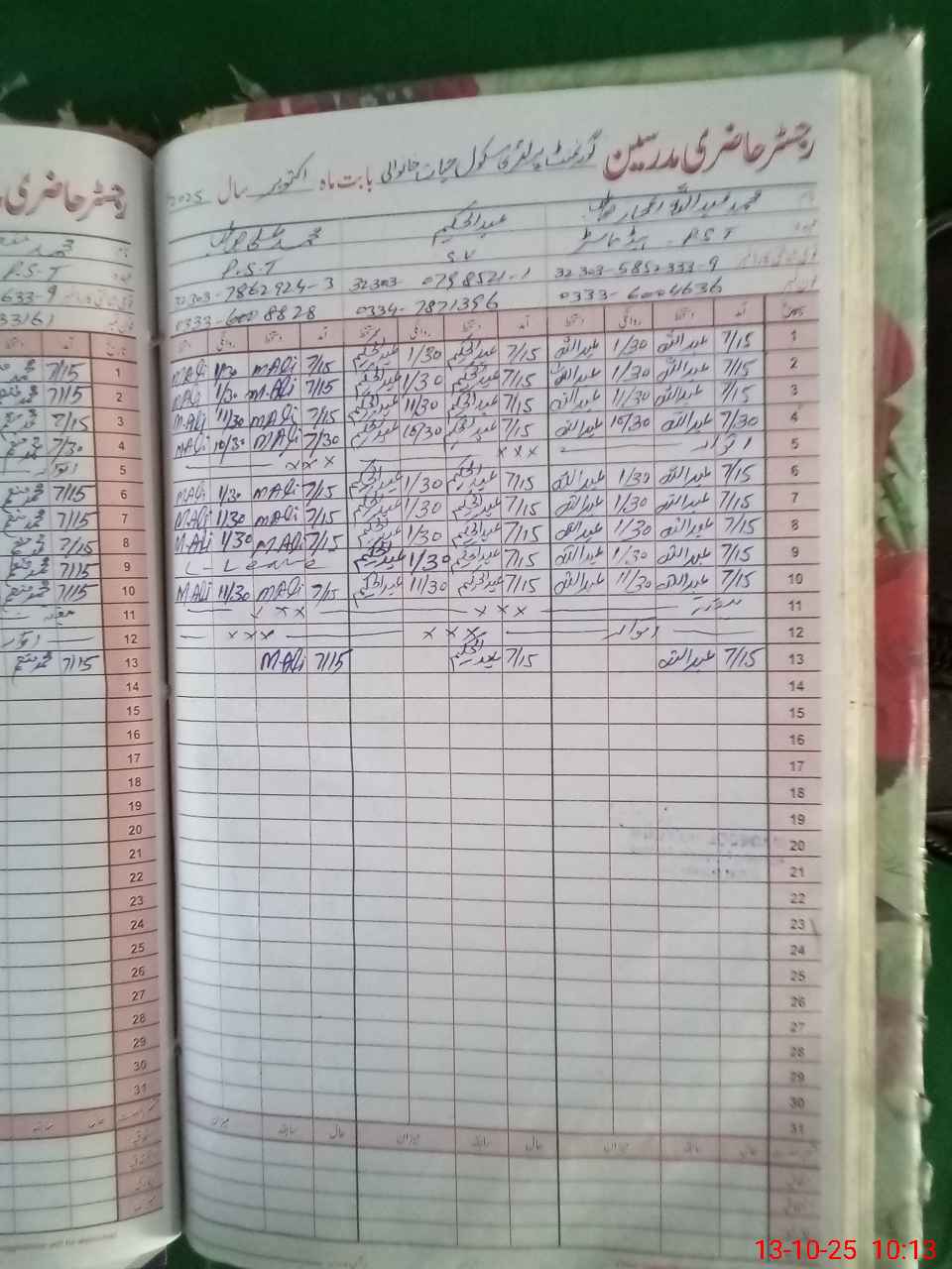 | Name: Mu**** Ab**** Designation: (School Headmaster's/Headmistress's) PST Phone/Cell Number: 03**** |