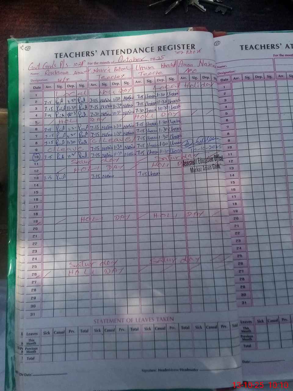 | Leave | Duty | Absent | Maternity | Medical | Ex- Pak |