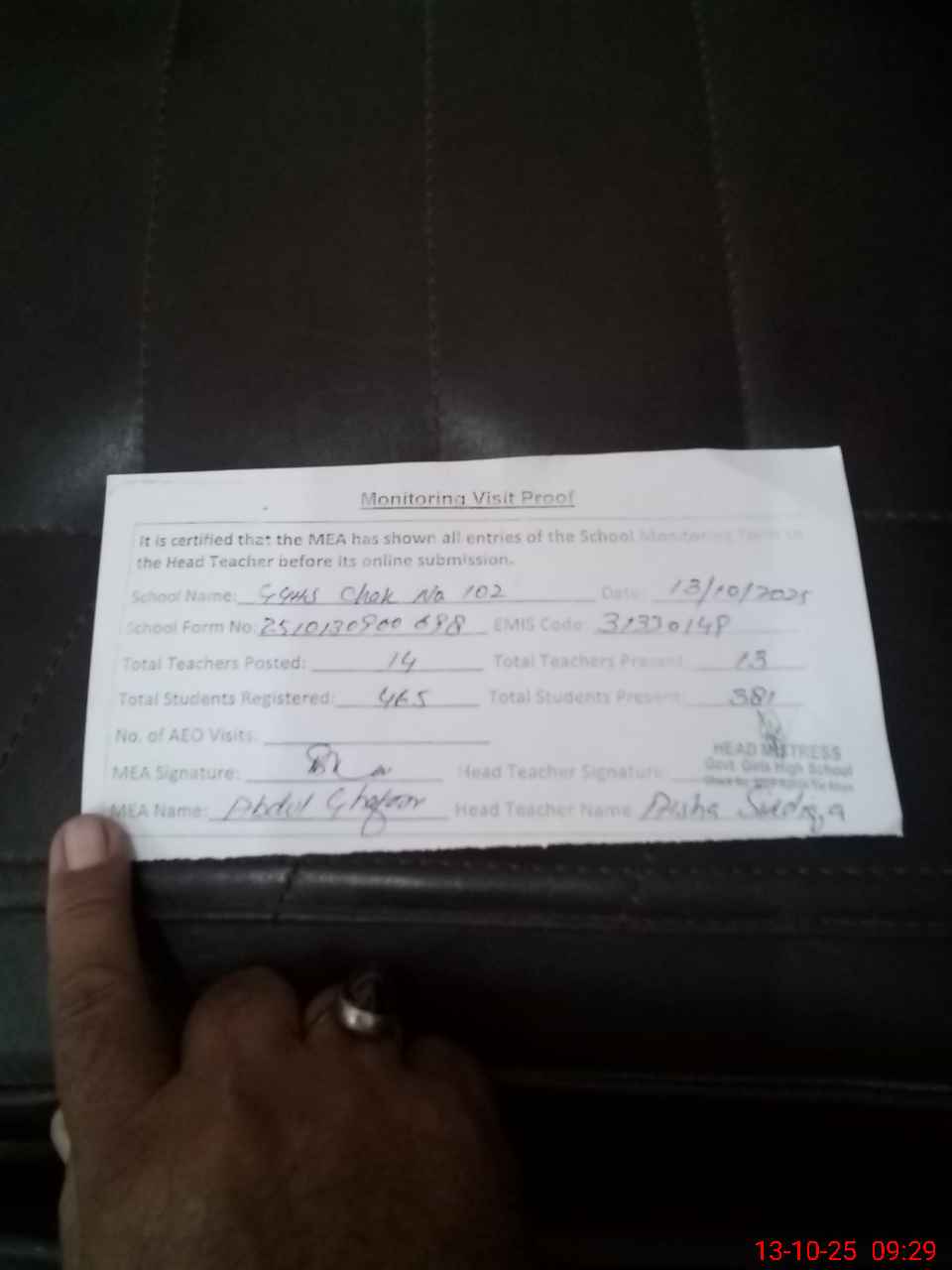 | Certified that this School was Inspected by the Undersigned MEA/DMO Today and the Information Stated Above is as Per Record. | |||||