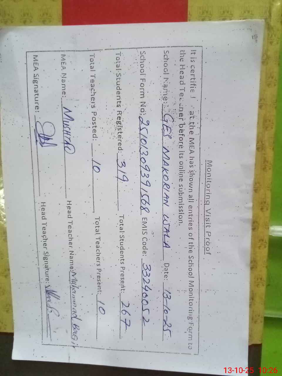 | EMIS Code: 33240052 | Name of School: GES MAKORIAN WALA | |||