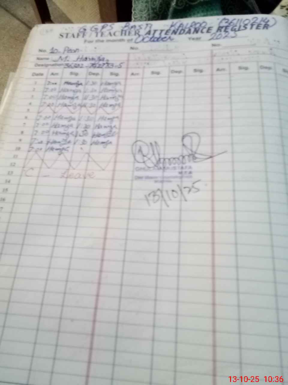 | 36**** | Wa**** Hi**** | PST | Regular | 0 | 0 | 0 | 0 | 0 | 0 | 0 | 0 | 0 | Absent (Un-Authorized) |