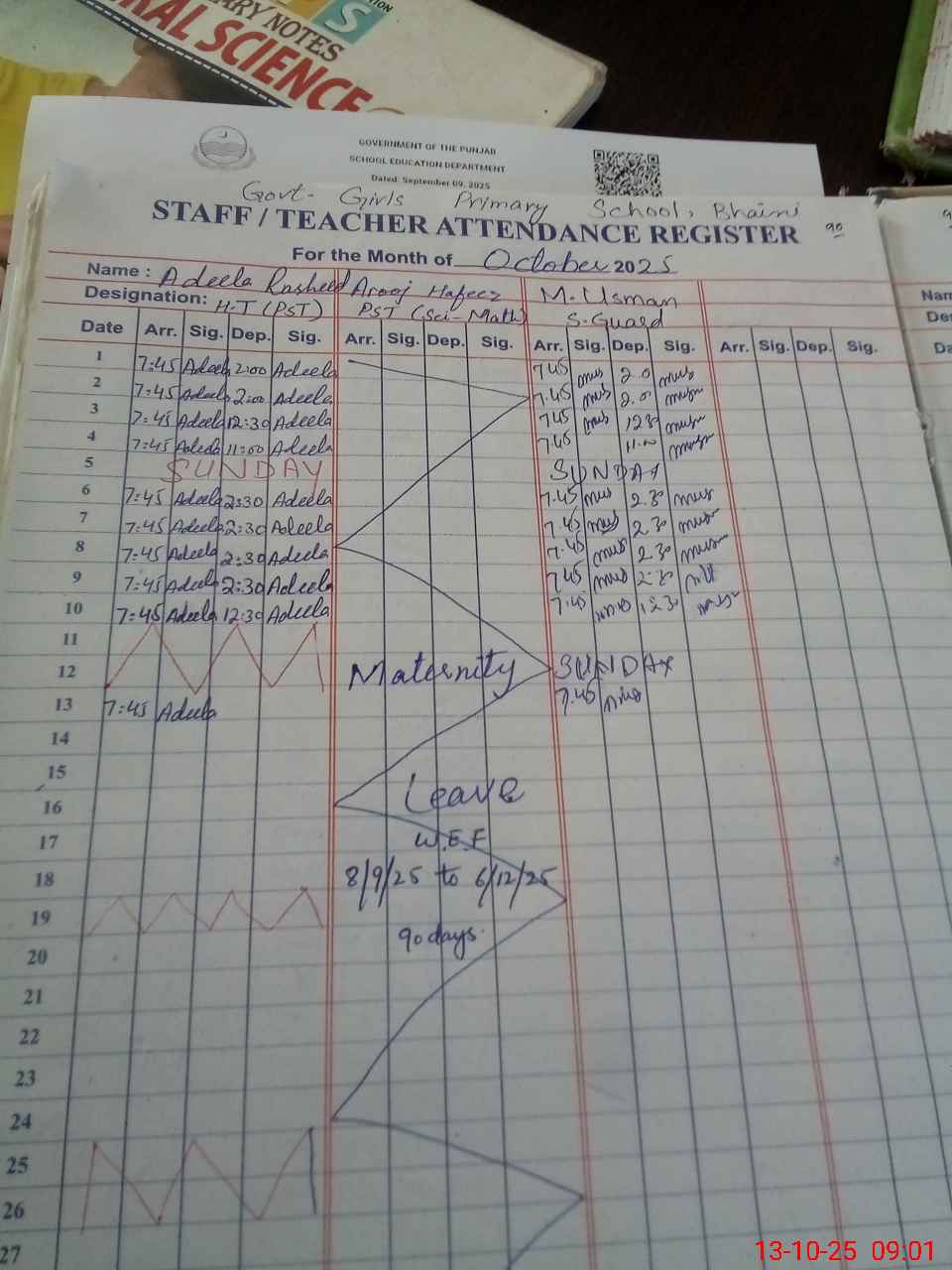 | 35**** | Ar**** Ha**** | PST | Regular | 23 | 0 | 0 | 23 | 0 | 0 | 0 | 0 | 0 | Maternity |