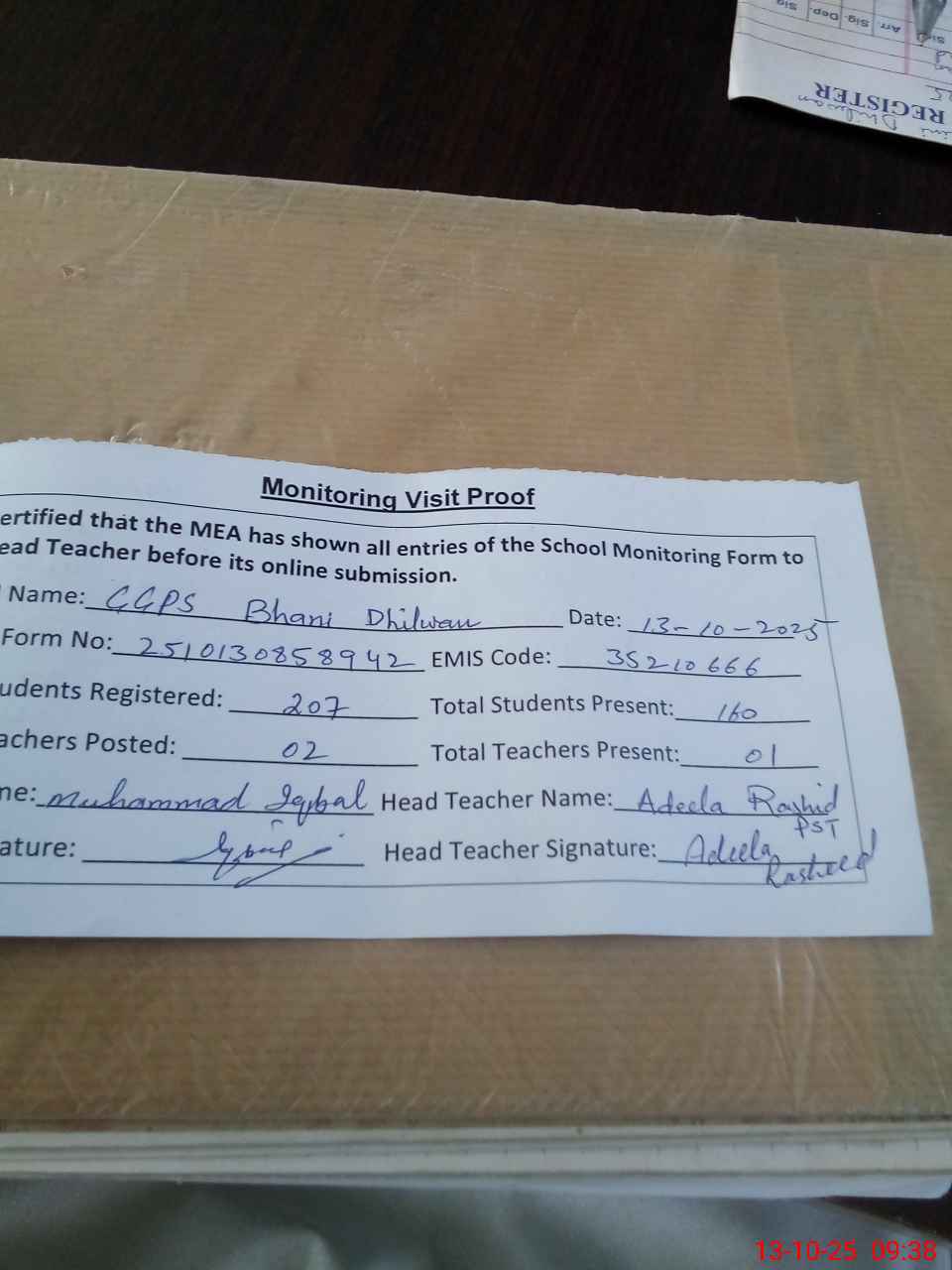 | Certified that this School was Inspected by the Undersigned MEA/DMO Today and the Information Stated Above is as Per Record. | |||||