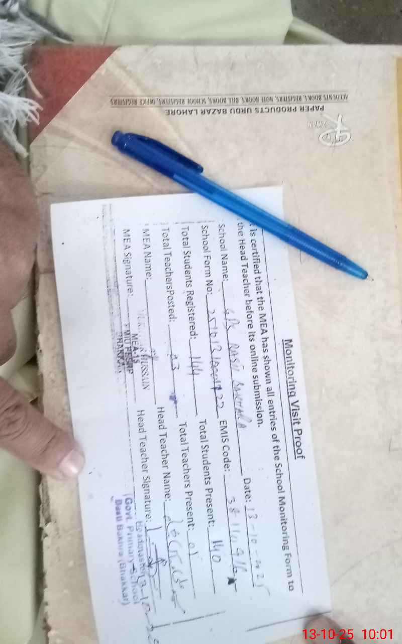 | Certified that this School was Inspected by the Undersigned MEA/DMO Today and the Information Stated Above is as Per Record. | |||||