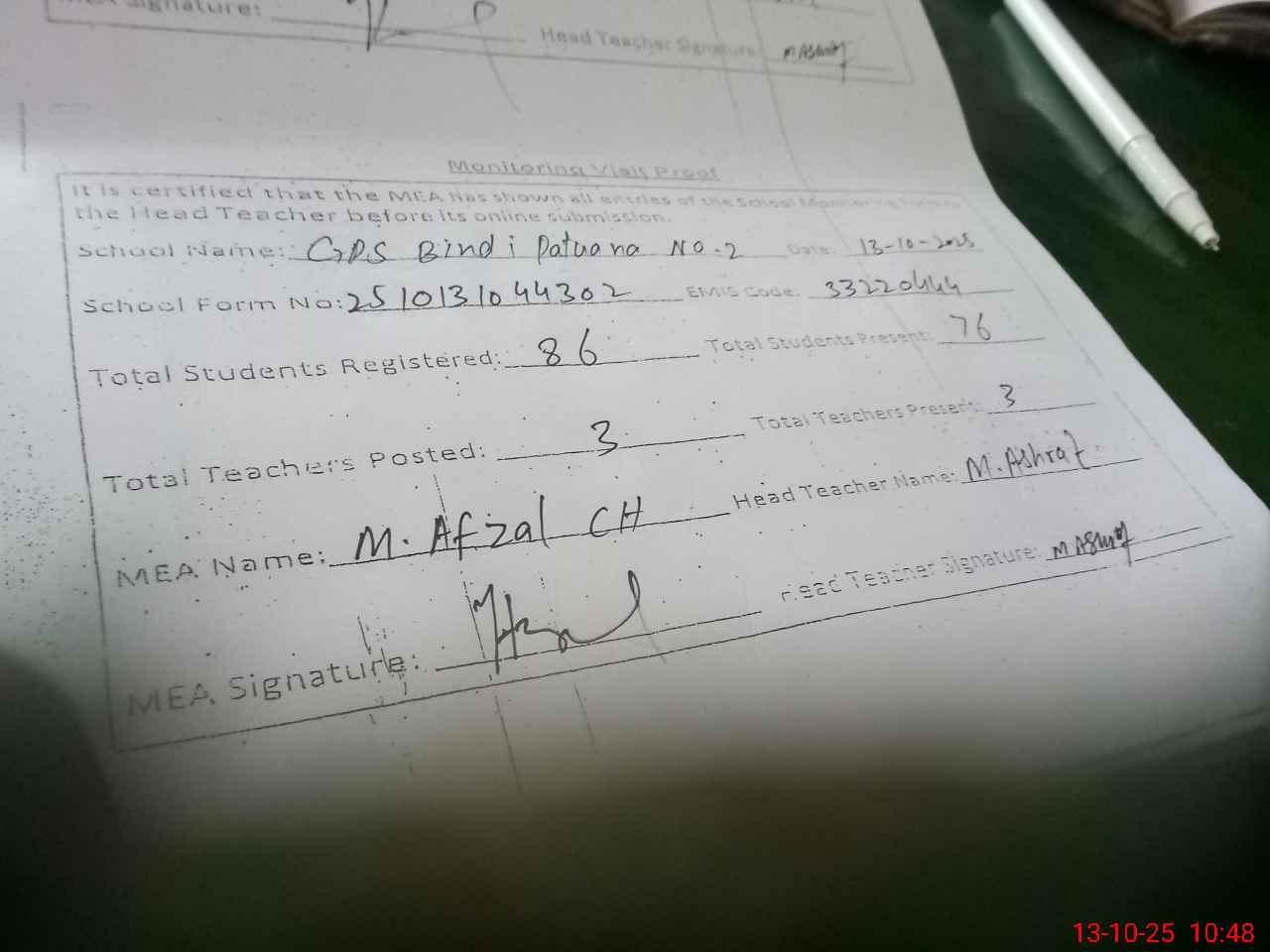 | Name: Mu**** As**** Designation: (School Headmaster's/Headmistress's) PST Phone/Cell Number: 03**** |