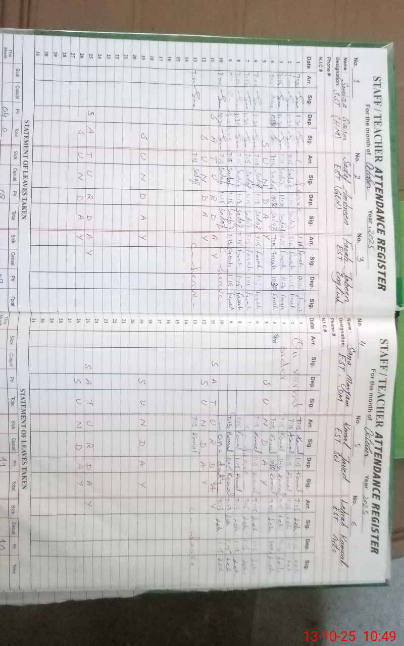 | Remarks (Use Separate Page if Required): EST Sana Maryam is absent because there is no written order in school for evidence | |||||