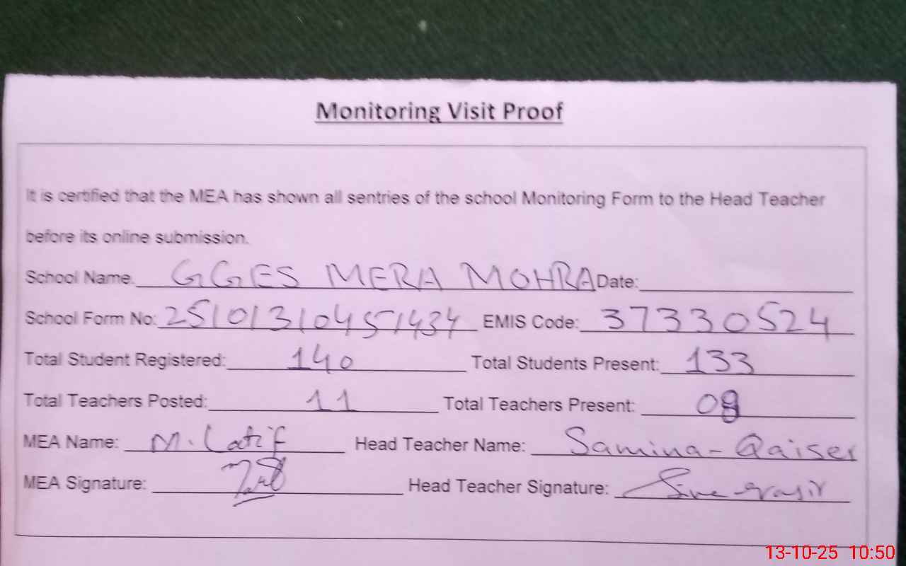 | EMIS Code: 37330524 | Name of School: GGES MERA MOHRA | |||