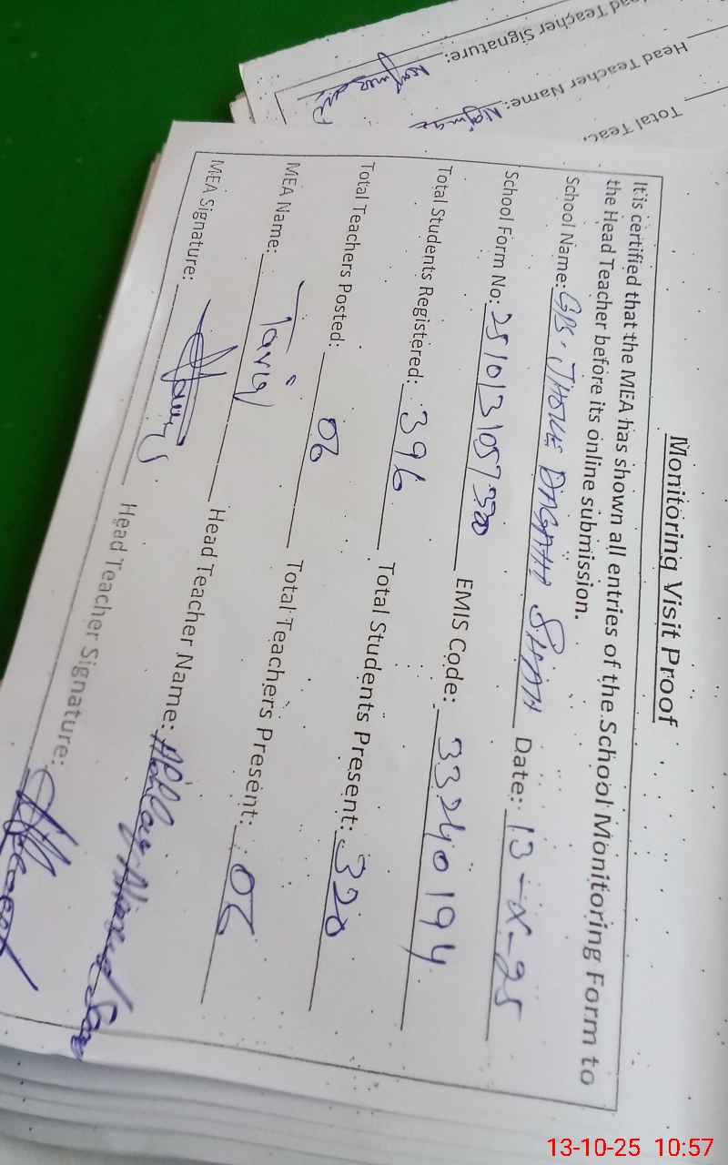 | Attendance Register | Head Teacher | MEA with School | Visit Proof |