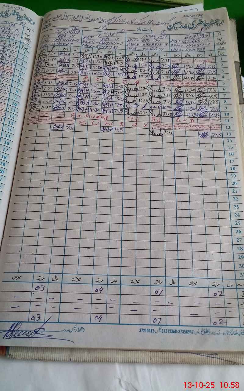 | CNIC | Full Name | Designation | R/C | Absence During Last Calender Month |