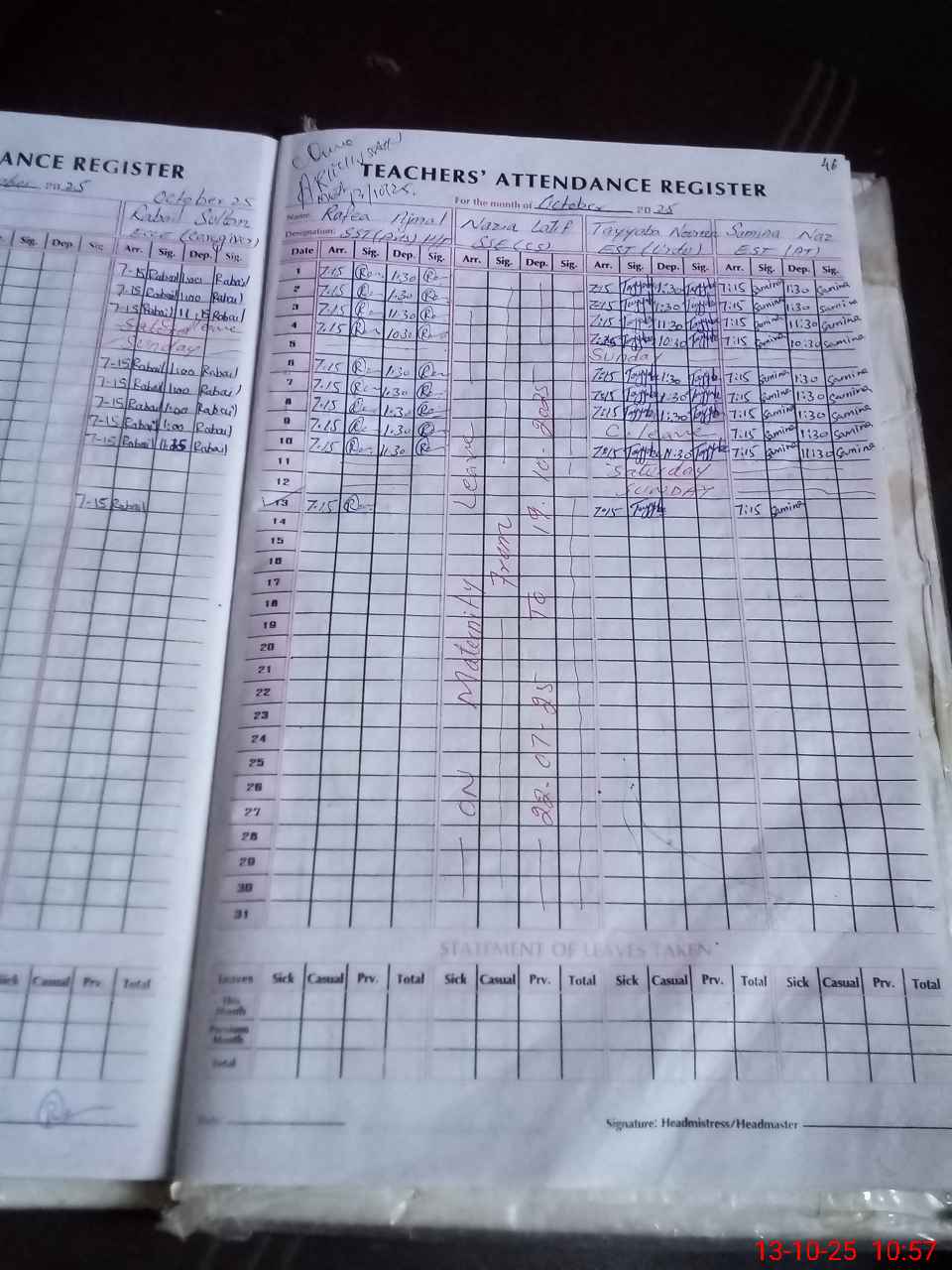 | Leave | Duty | Absent | Maternity | Medical | Ex- Pak |