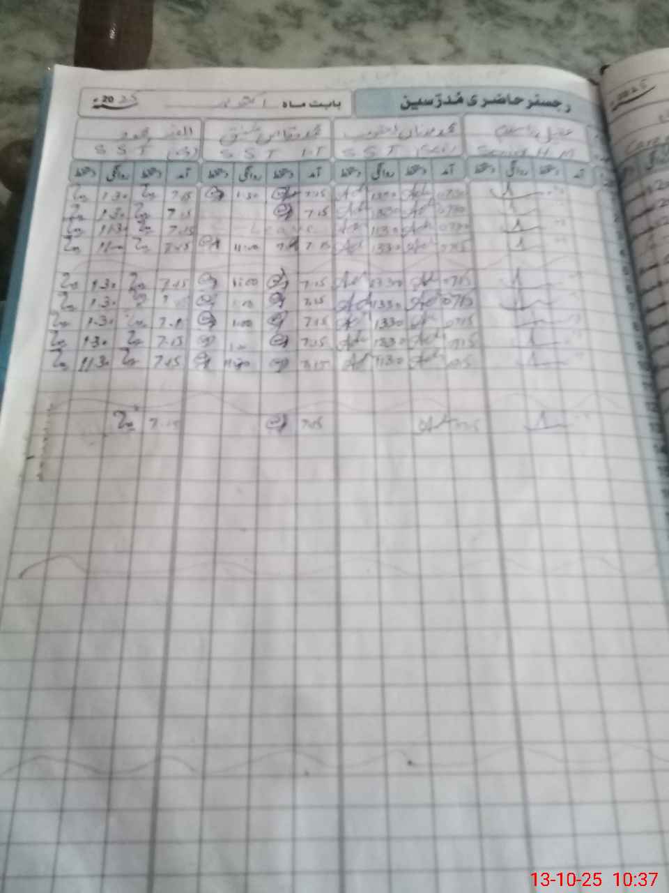 | CNIC | Full Name | Designation | R/C | Absence during last cal. month |