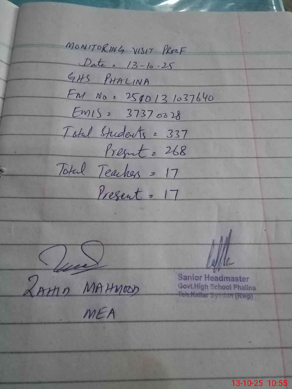 | EMIS Code: 37370028 | Name of School: GHS PHALINA | |||