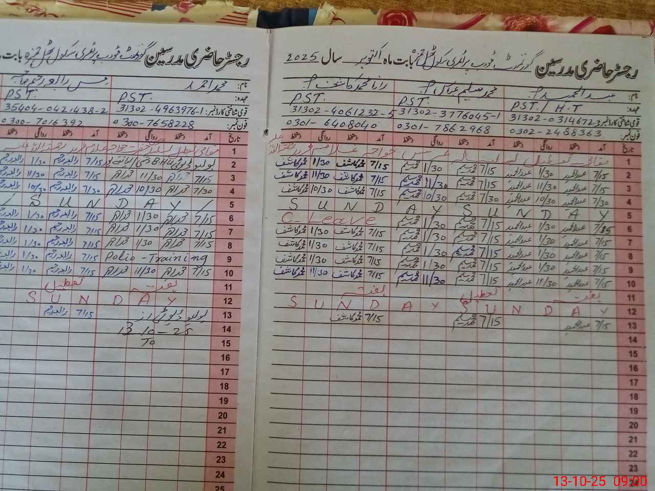 | Name: SH**** URRE**** Designation: (School Headmaster's/Headmistress's) PST Phone/Cell Number: 03**** |