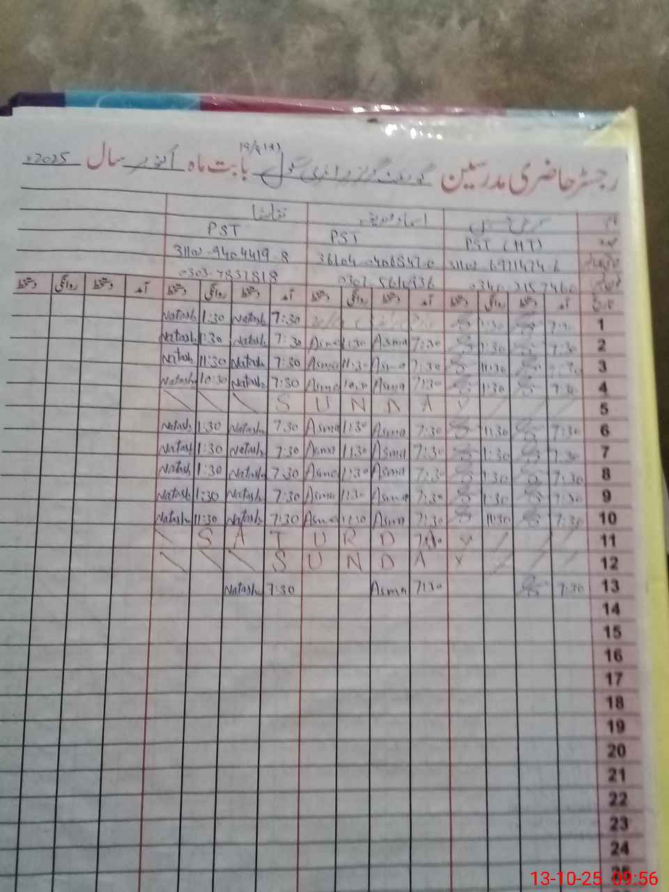 | Name: SE**** HU**** Designation: (School Headmaster's/Headmistress's) PST Phone/Cell Number: 03**** |