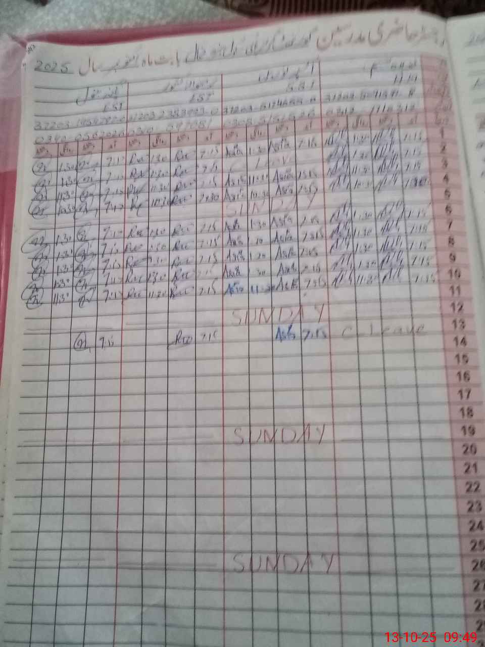 | CNIC | Full Name | Designation | R/C | Absence During Last Calender Month |
