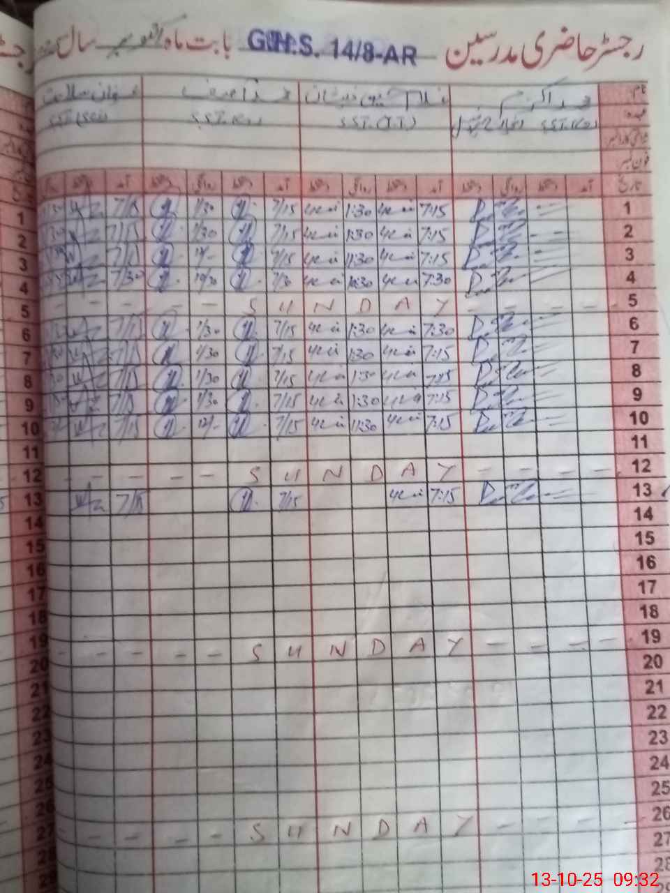 | 36**** | Ma**** Sa**** | PST | Regular | 0 | 0 | 28 | 28 | 0 | 0 | 0 | 0 | 0 | Absent (Un-Authorized) |
