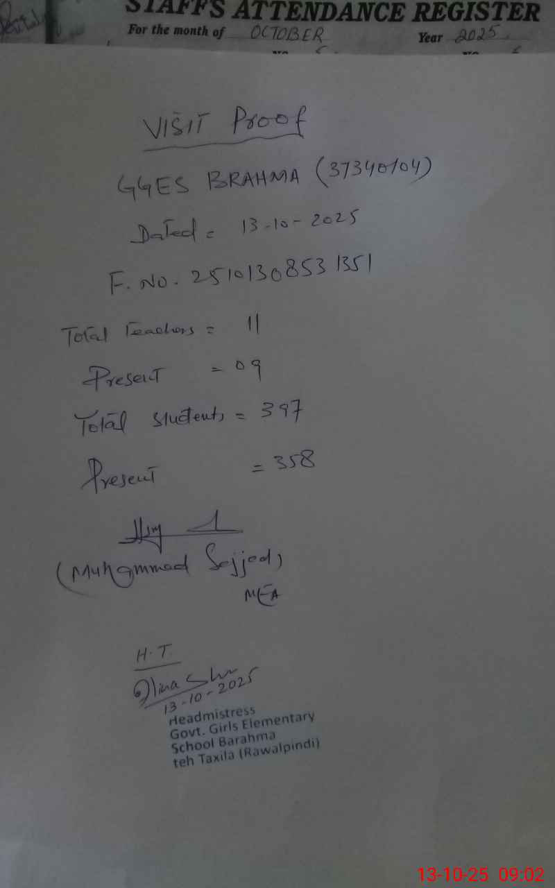 | Attendance Register | Head Teacher | MEA with School | Visit Proof |