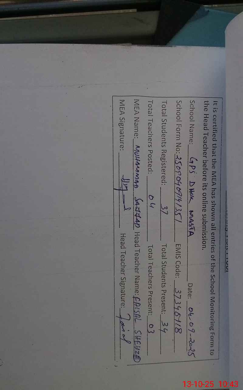 | EMIS Code: 37340118 | Name of School: GPS DHOKE MASTA | |||