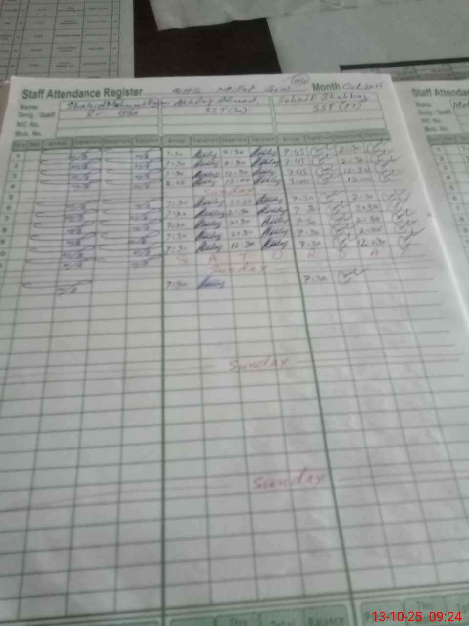 | CNIC | Full Name | Designation | R/C | Absence During Last Calender Month |