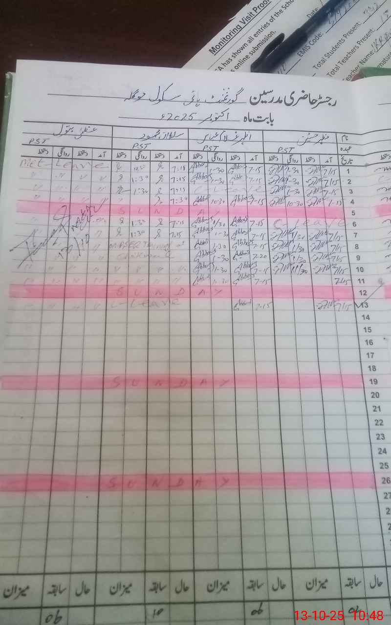 | 37**** | Mu**** An**** | HEADMASTER | Regular | 0 | 0 | 0 | 0 | 0 | 0 | 0 | 0 | 0 | |