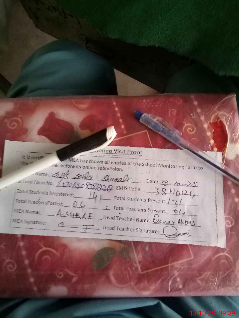 | EMIS Code: 38110124 | Name of School: GPS SOHLA SHUMALI | |||