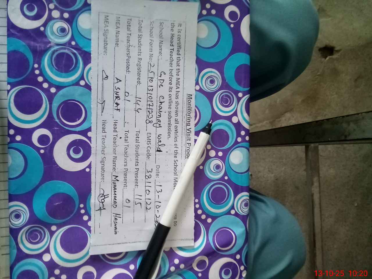 | EMIS Code: 38110122 | Name of School: GPS BASTI CHAINY WALI | |||