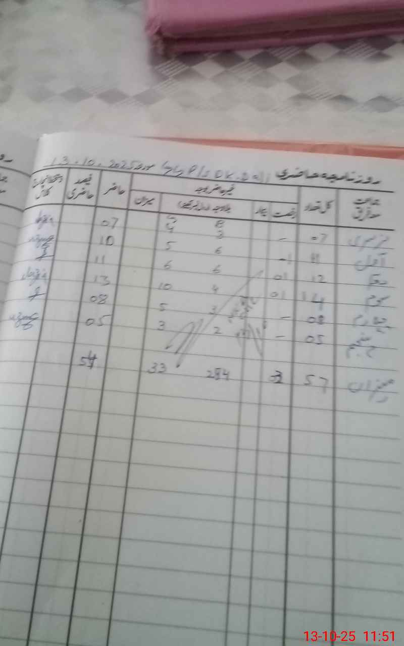 | CNIC | Full Name | Designation | R/C | Absence During Last Calender Month |