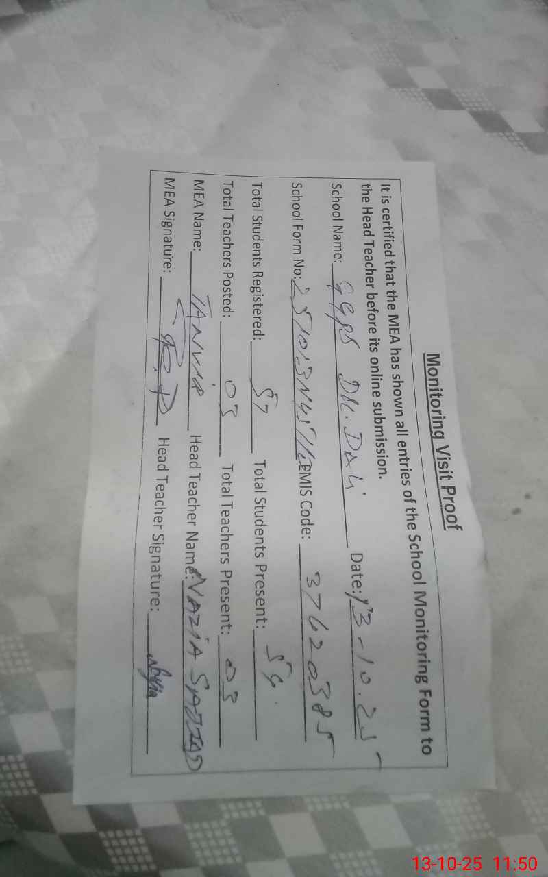| EMIS Code: 37420385 | Name of School: GGPS DHOK DALI | |||