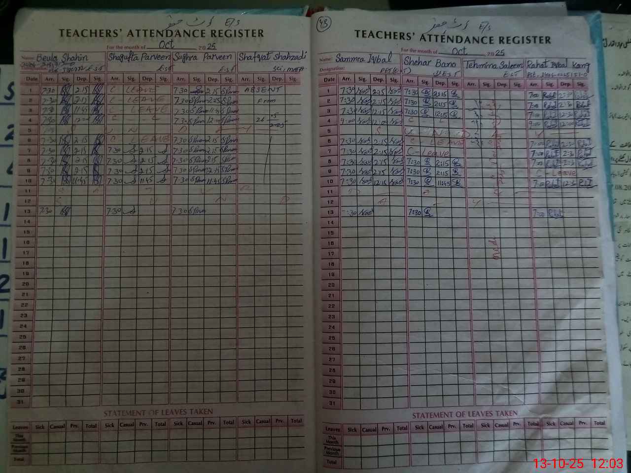 | Remarks (Use Separate Page if Required): Teacher saima Mukhtar not register in teachers list | |||||