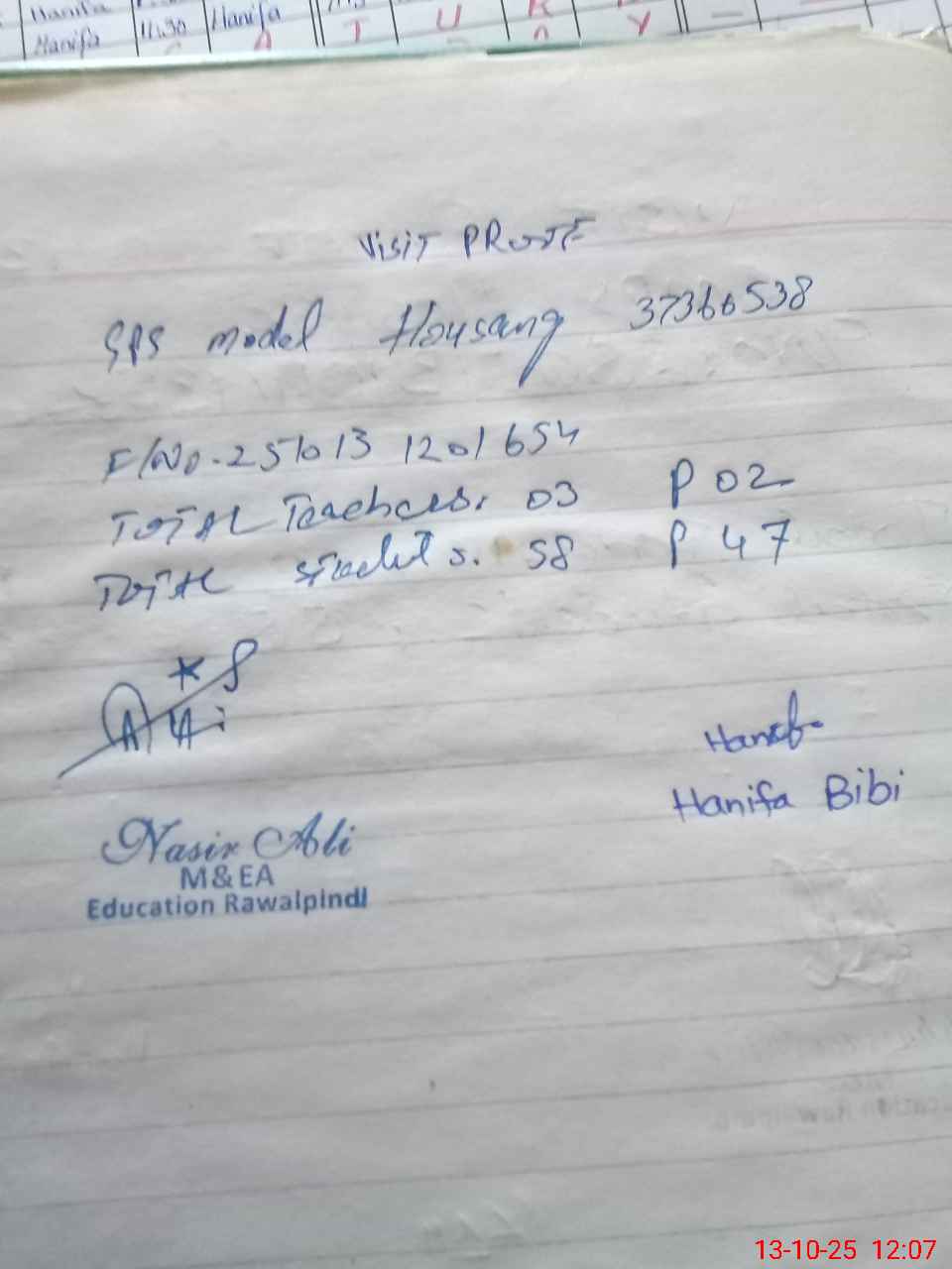 | Name: Ha**** BiBi Designation: (School Headmaster's/Headmistress's) PST Phone/Cell Number: 03**** |