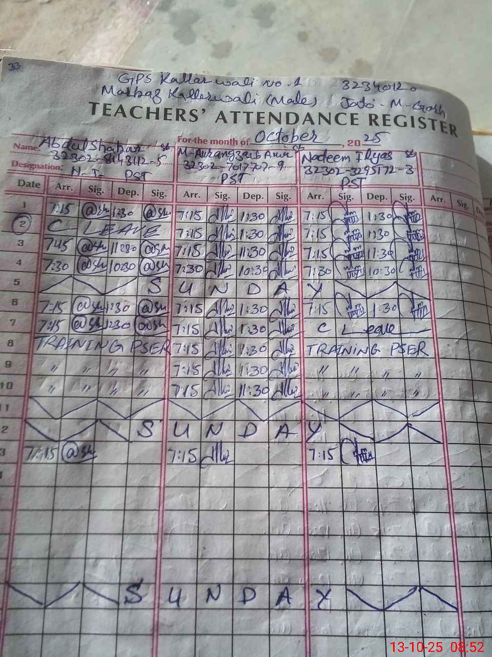 | EMIS Code: 32340120 | Name of School: GPS KALLAR WALI NO.1 | |||