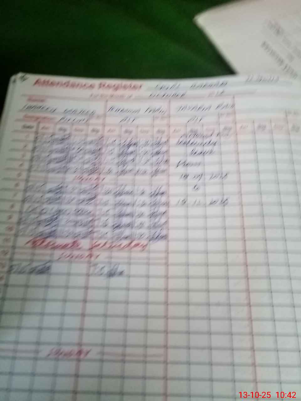 | CNIC | Full Name | Designation | R/C | Absence During Last Calender Month |