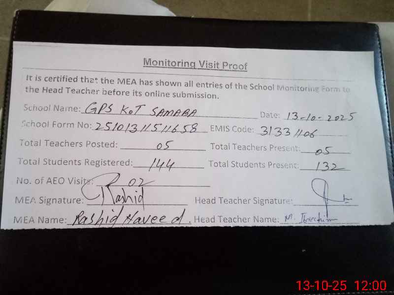 | EMIS Code: 31331106 | Name of School: GPS KOT SAMABA | |||