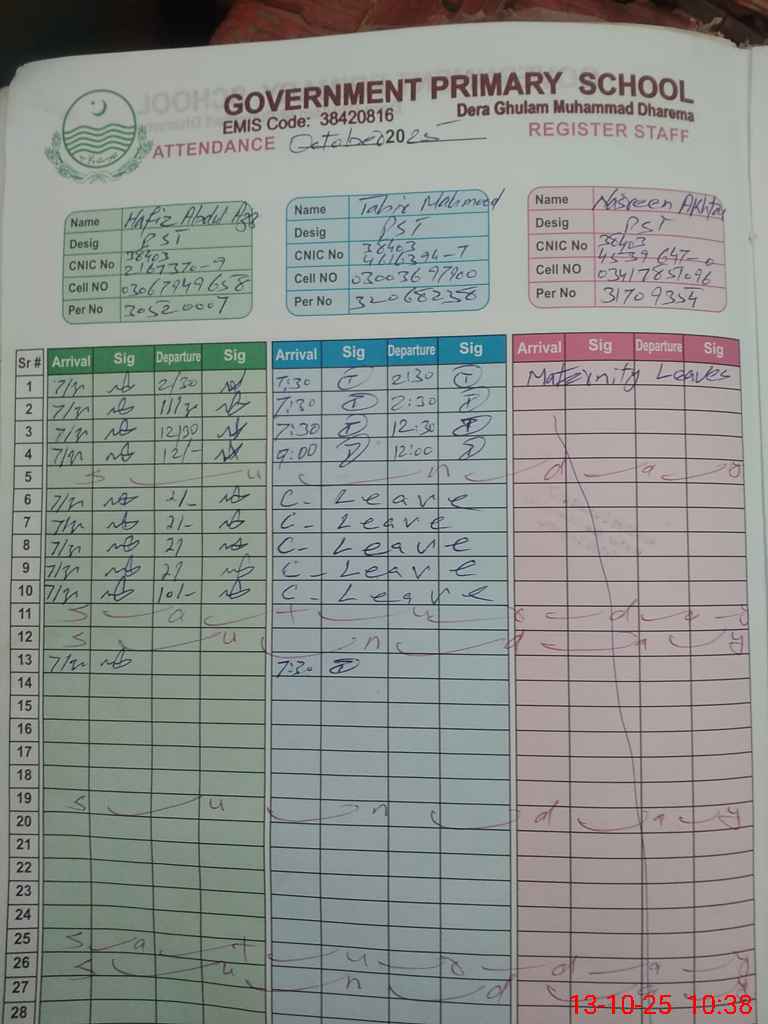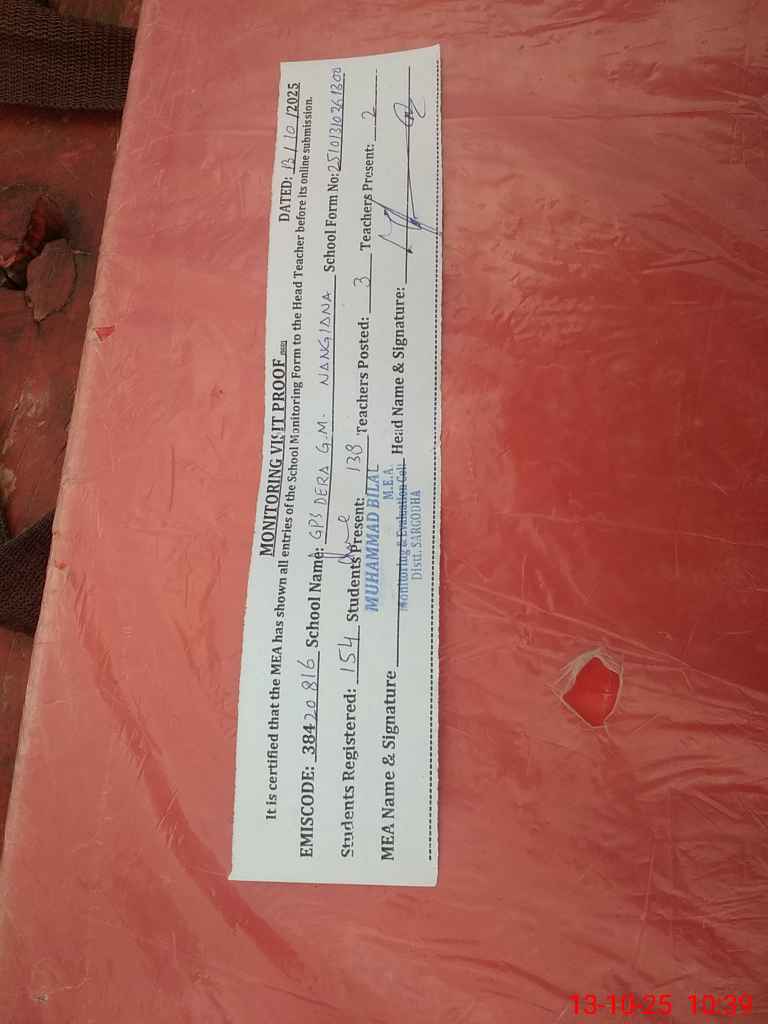 | EMIS Code: 38420816 | Name of School: GPS DERA GHULAM MUHAMMAD DHAREMA | |||