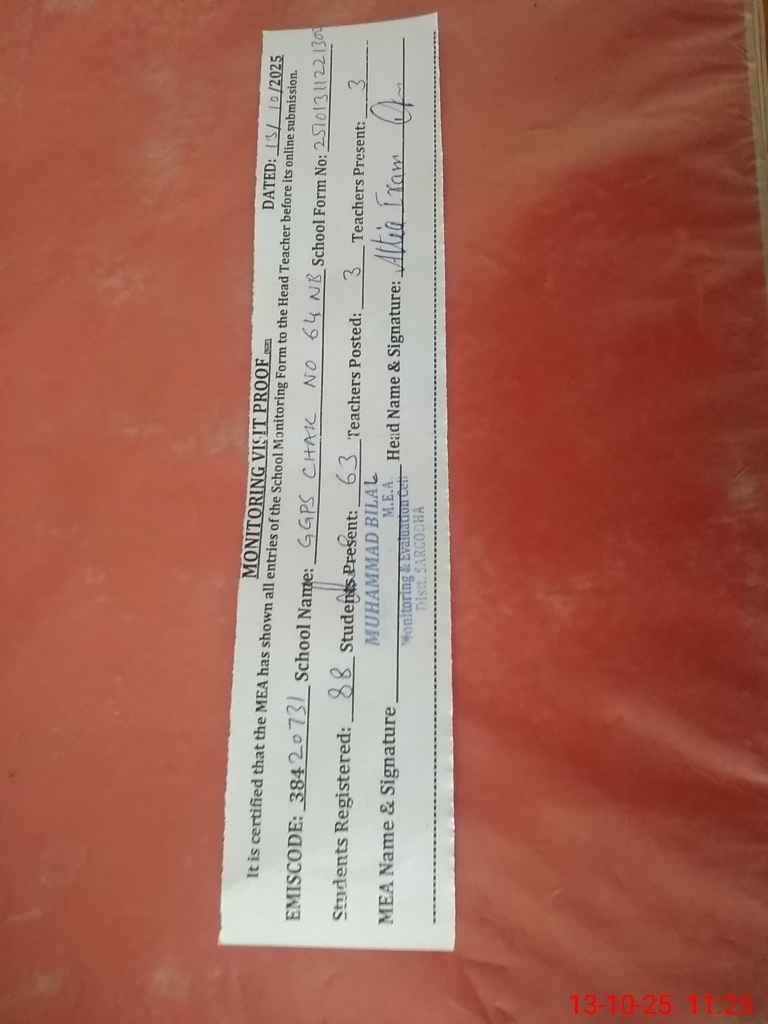 | EMIS Code: 38420731 | Name of School: GGPS CHAK NO.64 NB | |||
