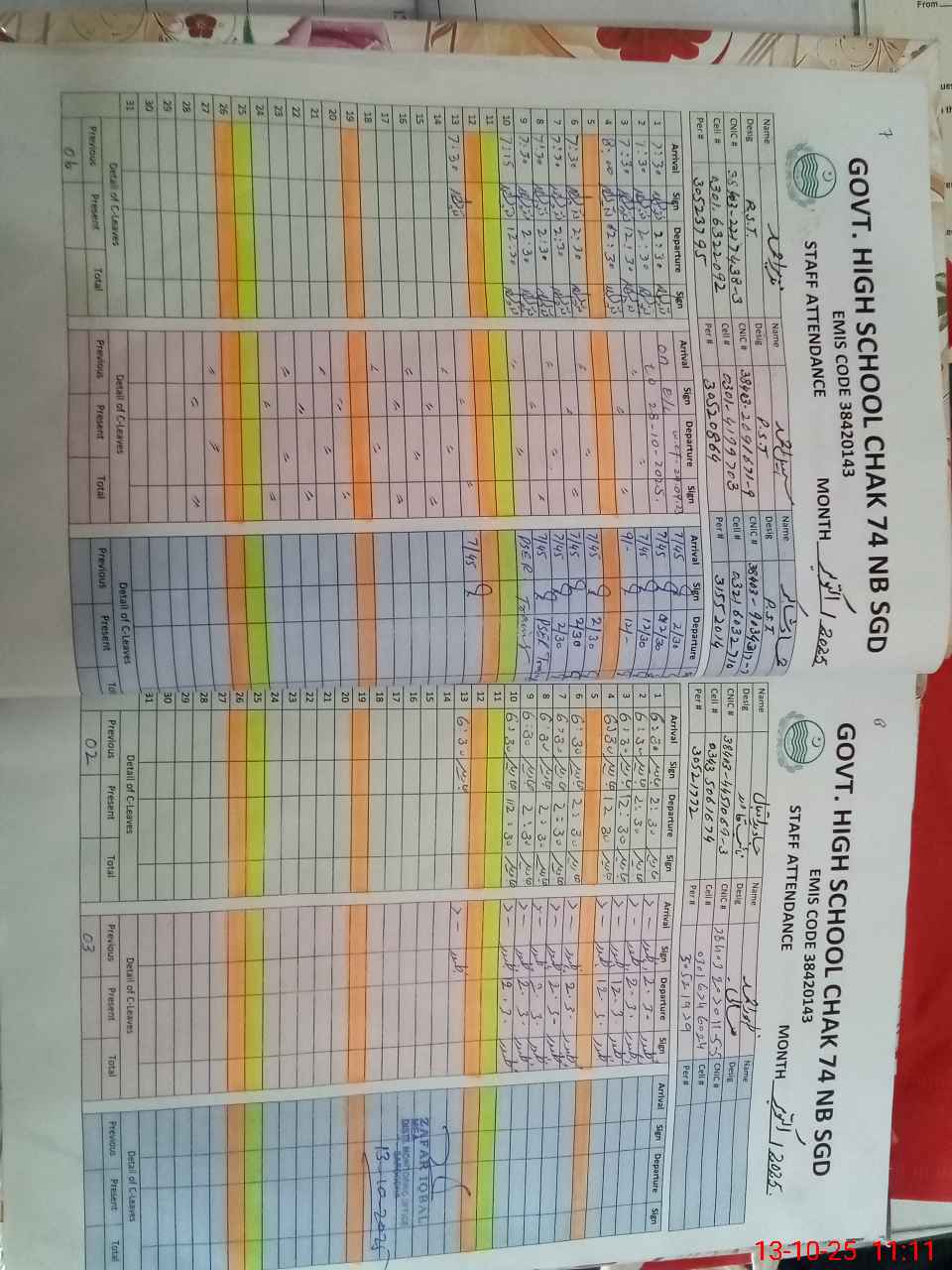 | EMIS Code: 38420143 | Name of School: GHS CHAK NO.74 NB | |||
