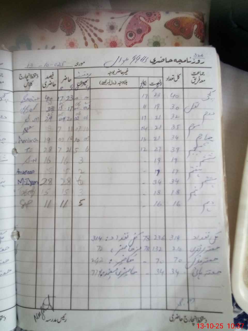 | Total Students Present | 0 | 0 | 40 | 24 | 26 | 18 | 19 | 27 | 12 | 16 | 28 | 15 | 12 | 237 | ||