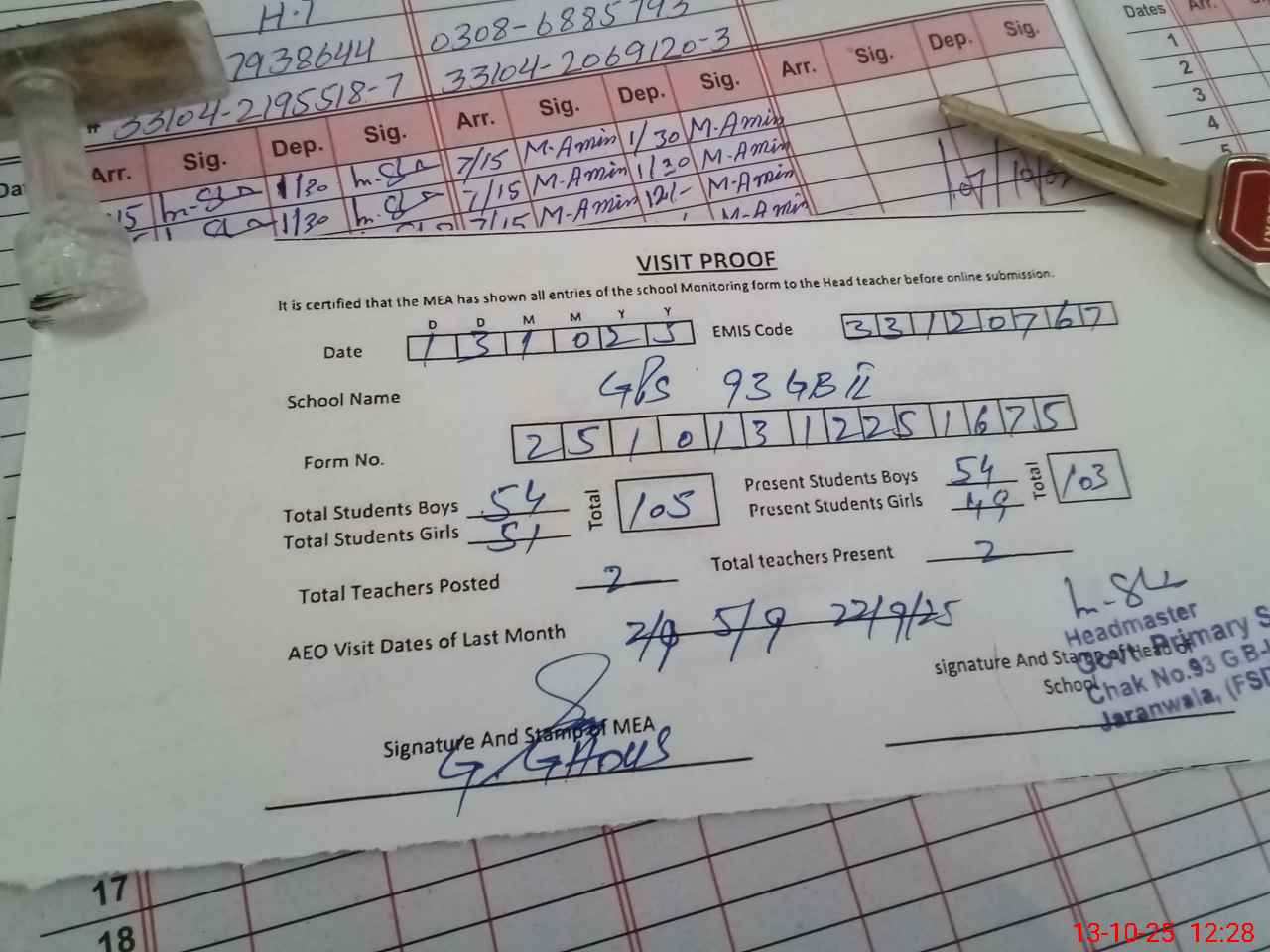 | Attendance Register | Head Teacher | MEA with School | Visit Proof |