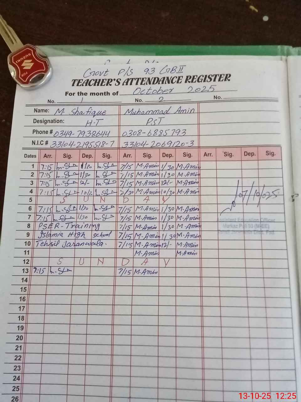 | Name: MU**** SH**** Designation: (School Headmaster's/Headmistress's) PST Phone/Cell Number: 03**** |