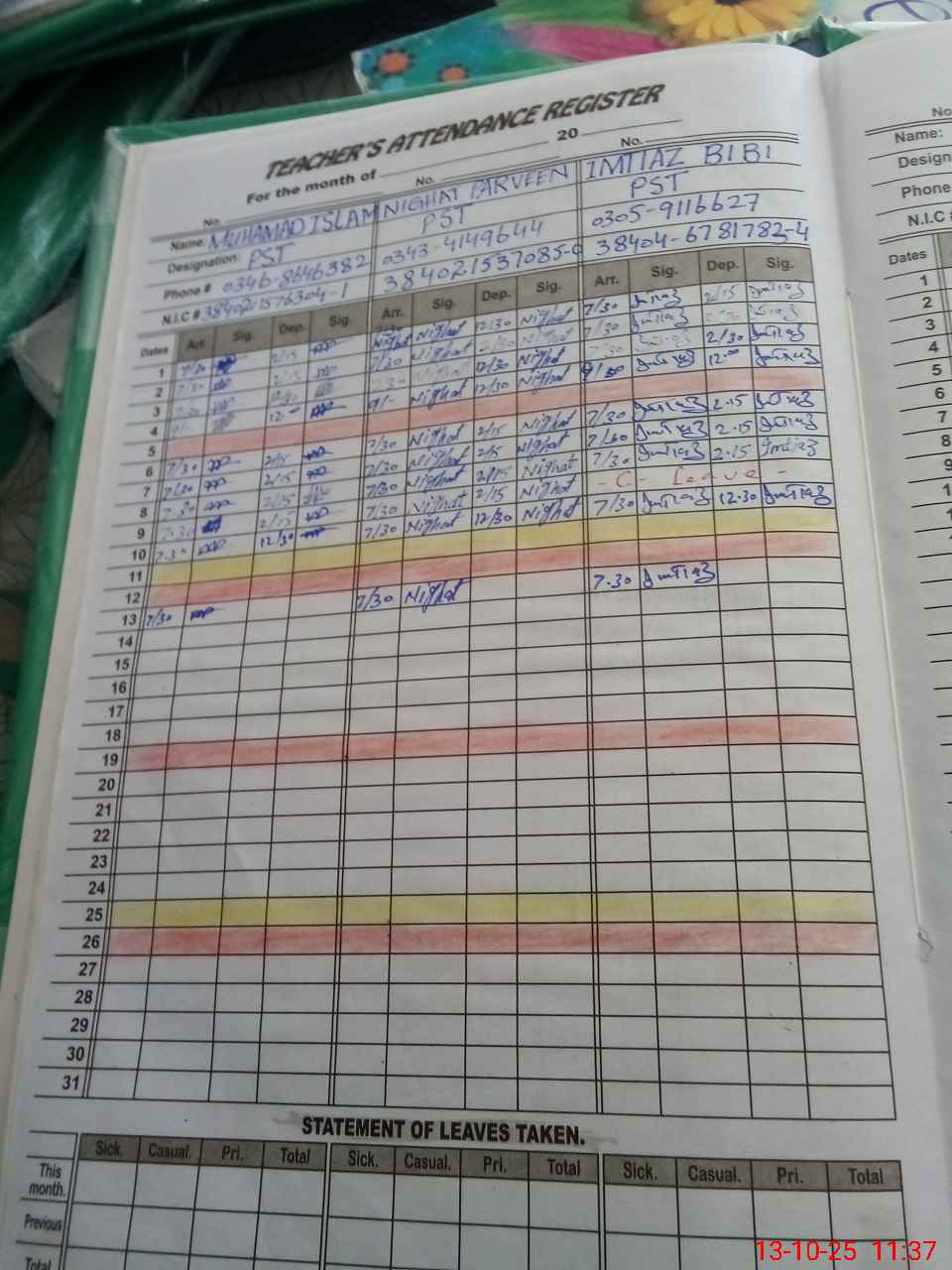 | Name: MU**** IS**** Designation: (School Headmaster's/Headmistress's) PST Phone/Cell Number: 03**** |