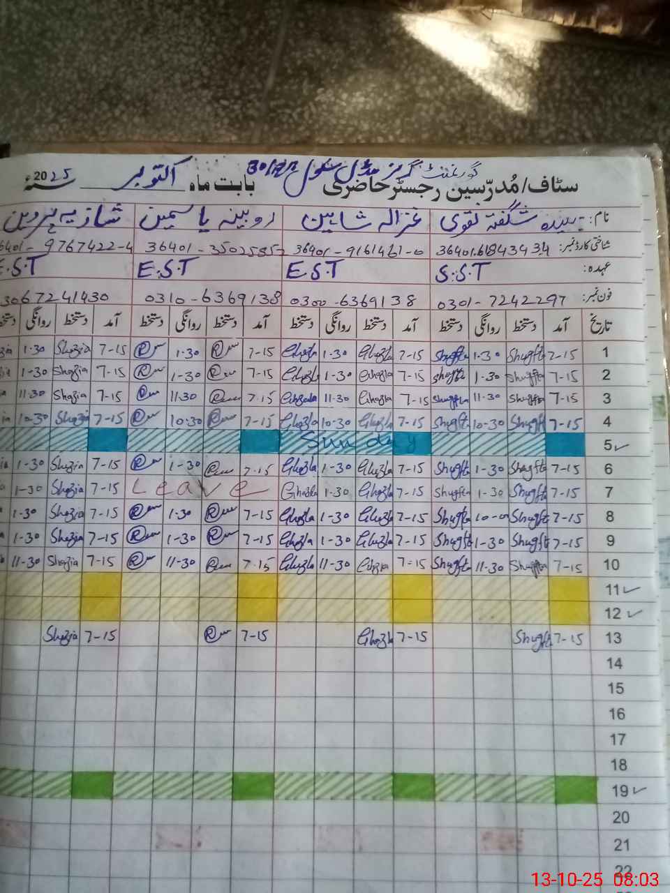 | Name: SY**** SH**** NA**** Designation: (School Headmaster's/Headmistress's) SST (GENERAL) Phone/Cell Number: 03**** |